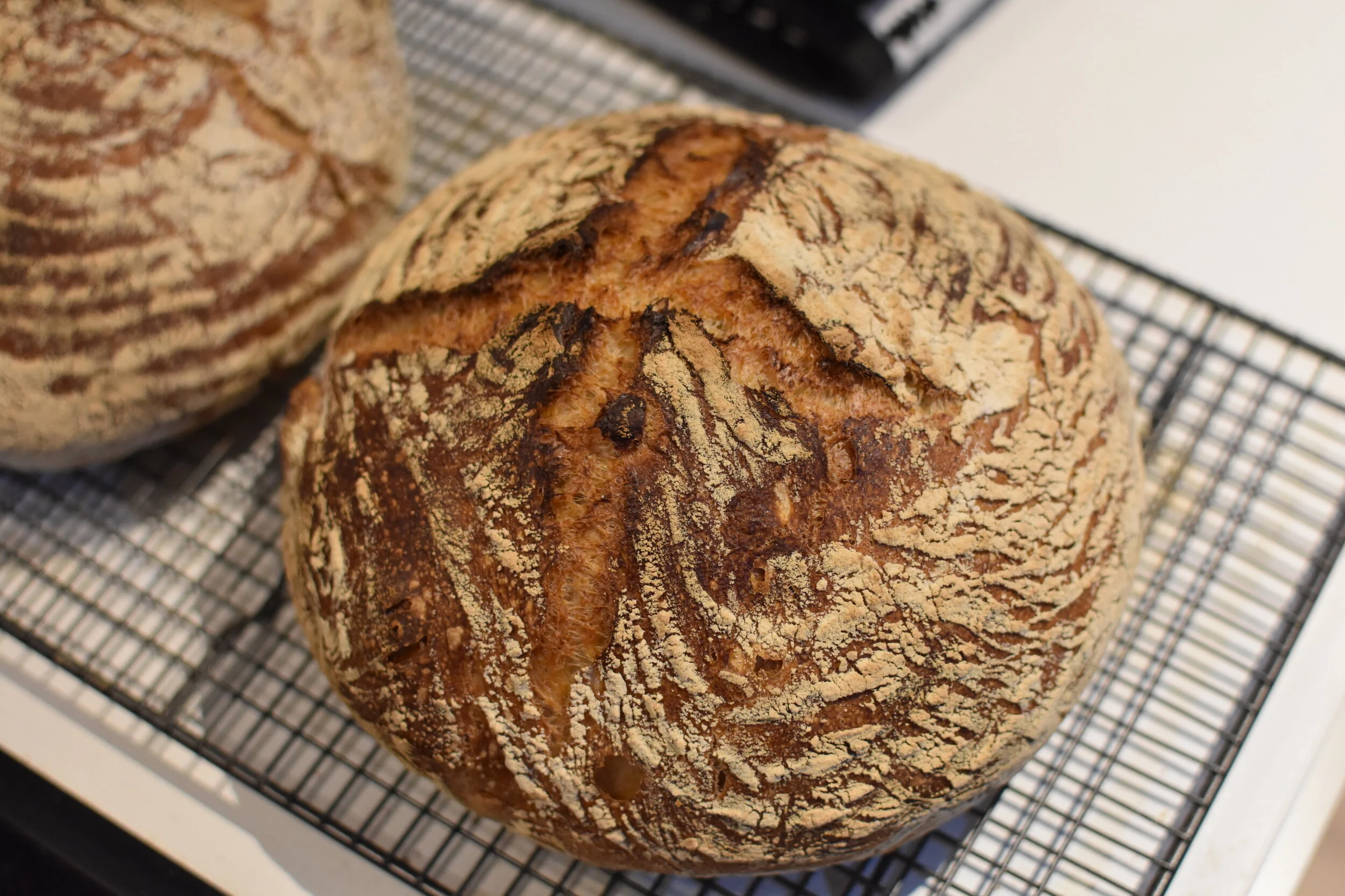 interestingly, the loaves are baked seam-side up, so do not require scoring before baking, as the bread naturally tears where the seam has been closed during shaping. i really love this look for these loaves, as every bake finishes with unique cracks and tears, and you can see the gluten strands that have been pulled apart as the bread has risen.